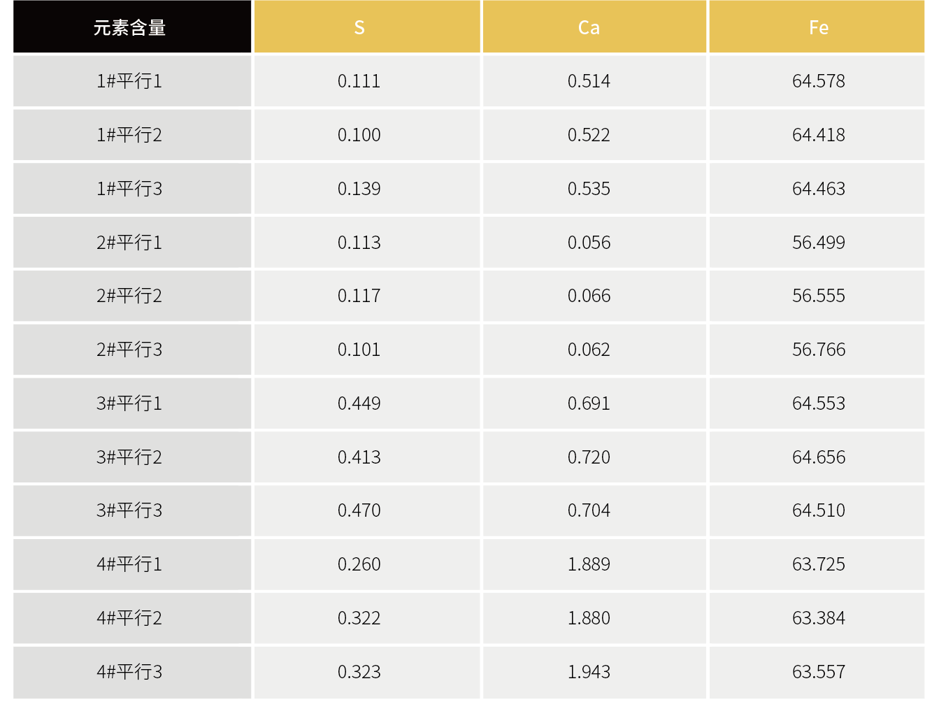 快速分析矿物中铁、钙、铜、锰等⾦属元素和磷、硫、硅等⾮⾦属元素含量。