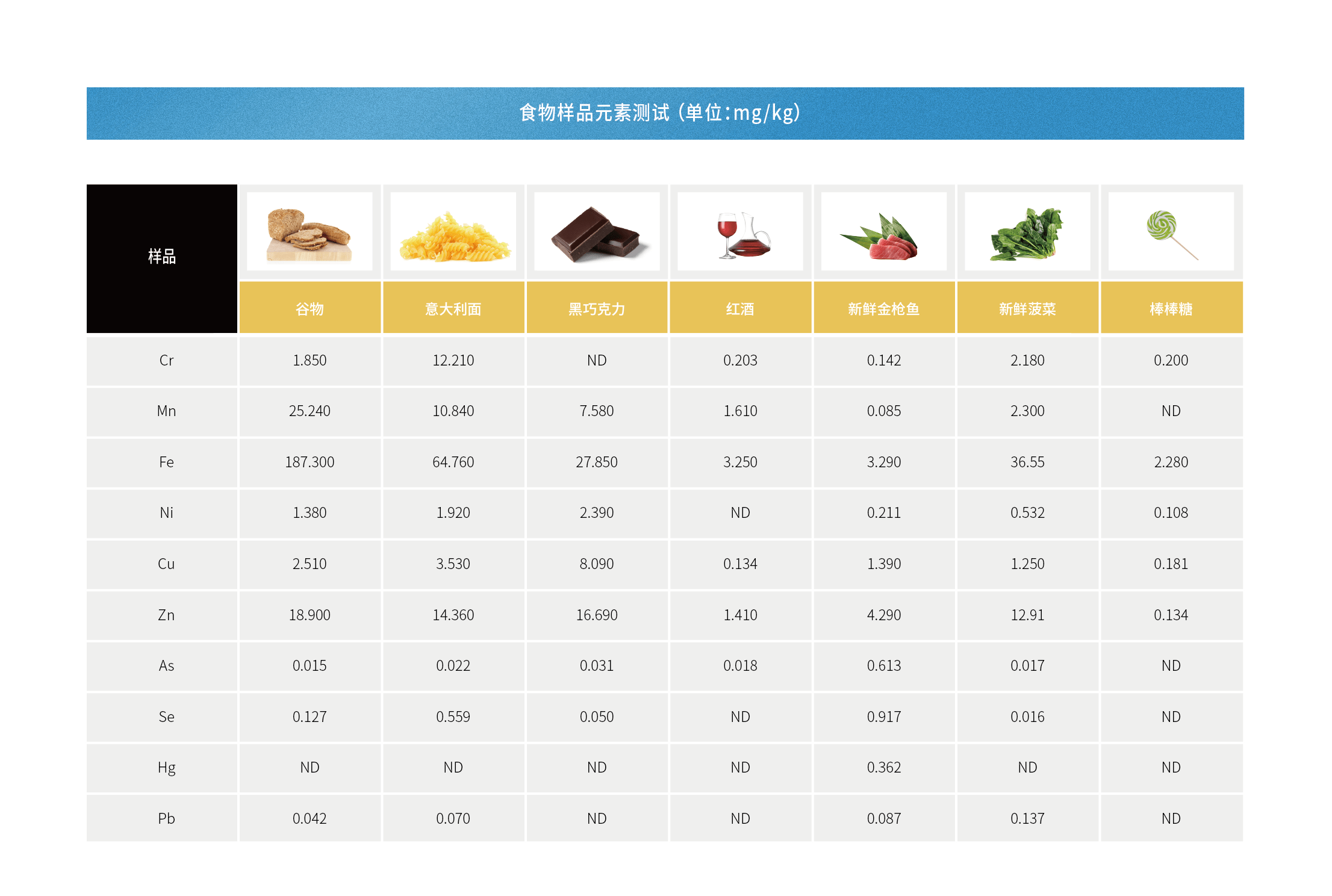 食品、药品、植物、 地下水、地表水以及工业污水中重金属的检测。